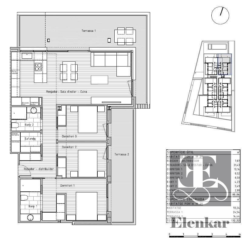 Si desea vivir en un entorno privilegiado cerca de todos los servicios no deje escapar esta oportunidad venga a visitar esta nueva construcción de un edificio plurifamiliar compuesto por 24 viviendas situado en la localidad de Cunit. .Este bloque de nueva construcción ha sido diseñado con un enfoque en la elegancia moderna. Cada piso ha sido meticulosamente diseñado para maximizar el espacio y la luz, creando un ambiente acogedor y atractivo y con los más altos estándares de calidad. Desde los acabados interiores hasta los electrodomésticos de alta gama, como cada pequeño detalle, garantizando la máxima satisfacción para del propietario..Con una superficie construida total de 132,22 m2 de vivienda, y 93,24 m2 construidos interior de vivienda se encuentra distribuidos 3 amplias habitaciones (1 de ellas suitte), salón comedor con cocina americana de 31,43 m2 totalmente equipada con todos los electrodomésticos, 2 baños completos, 1 lavadero con los electrodomésticos integrados de lavadora y secadora marca BALAY, recibidor 2 terraza de 24,54 m2 y 14,44 m2 respectivamente, suelos porcelanamicos en toda la vivienda, carpintería exterior de aluminio de color gris claro de perfil eficiente y con rotura de puente térmico, carpintería interior con puertas correderas lacadas en blanco..Además, contamos con zona comunitaria con piscina, ascensor y plazas de parking opcionales. .El entorno y municipio:.Cunit se encuentra situado en la comarca del Bajo Penedés y en la provincia de Tarragona aunque está incluido en la tercera corona de la región urbana de Barcelona. Limita con Segur de Calafell (localidad del municipio de Calafell), de la misma comarca, así como con Cubellas, en la comarca del Garraf, y Castellet y Gornal, en la comarca del Alto Penedés, ambos de la provincia de Barcelona..Su paisaje es típicamente mediterráneo, desde los 2,5 km de playas de arena fina, protegidas por los espigones que le proporciona sus formas semicirculares características, pasando por las planicies agrícolas (denominadas Prats de Cunit i Plana del Castell) hasta las sierras del centro (Sierra de Sant Antoni) y norte del municipio, siendo parte de las últimas montañas de la sierra litoral catalana... .