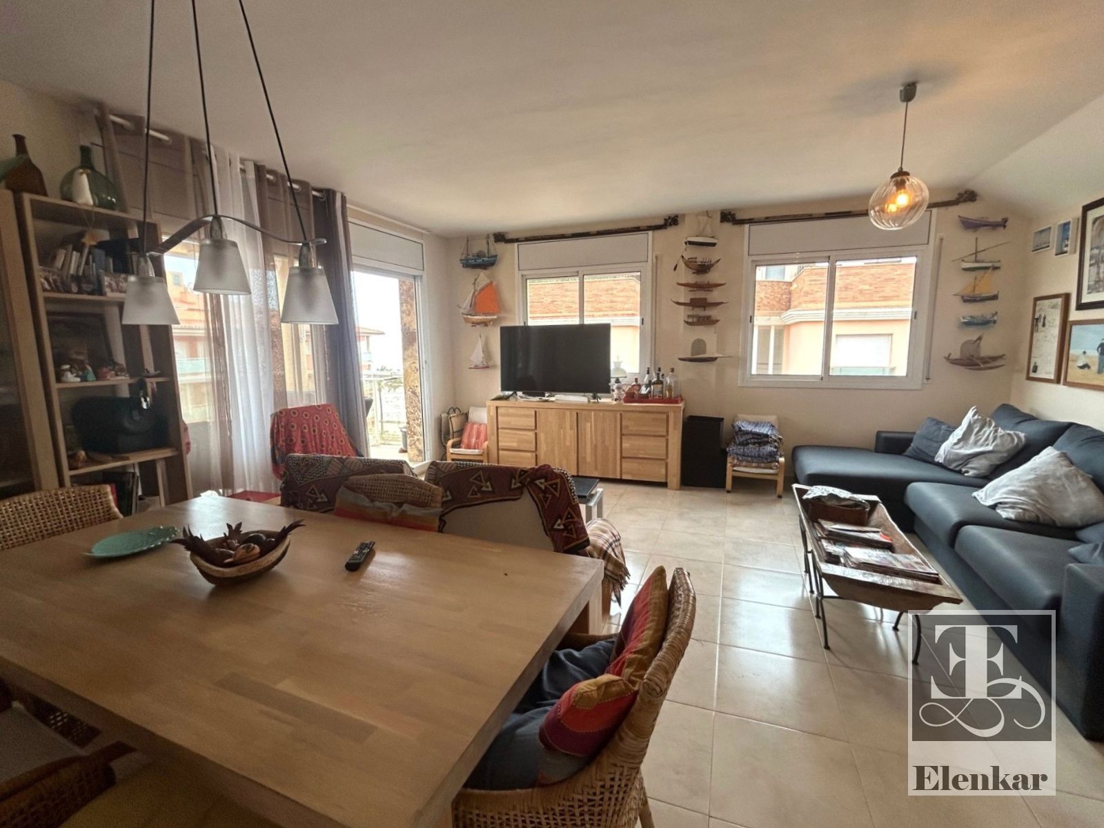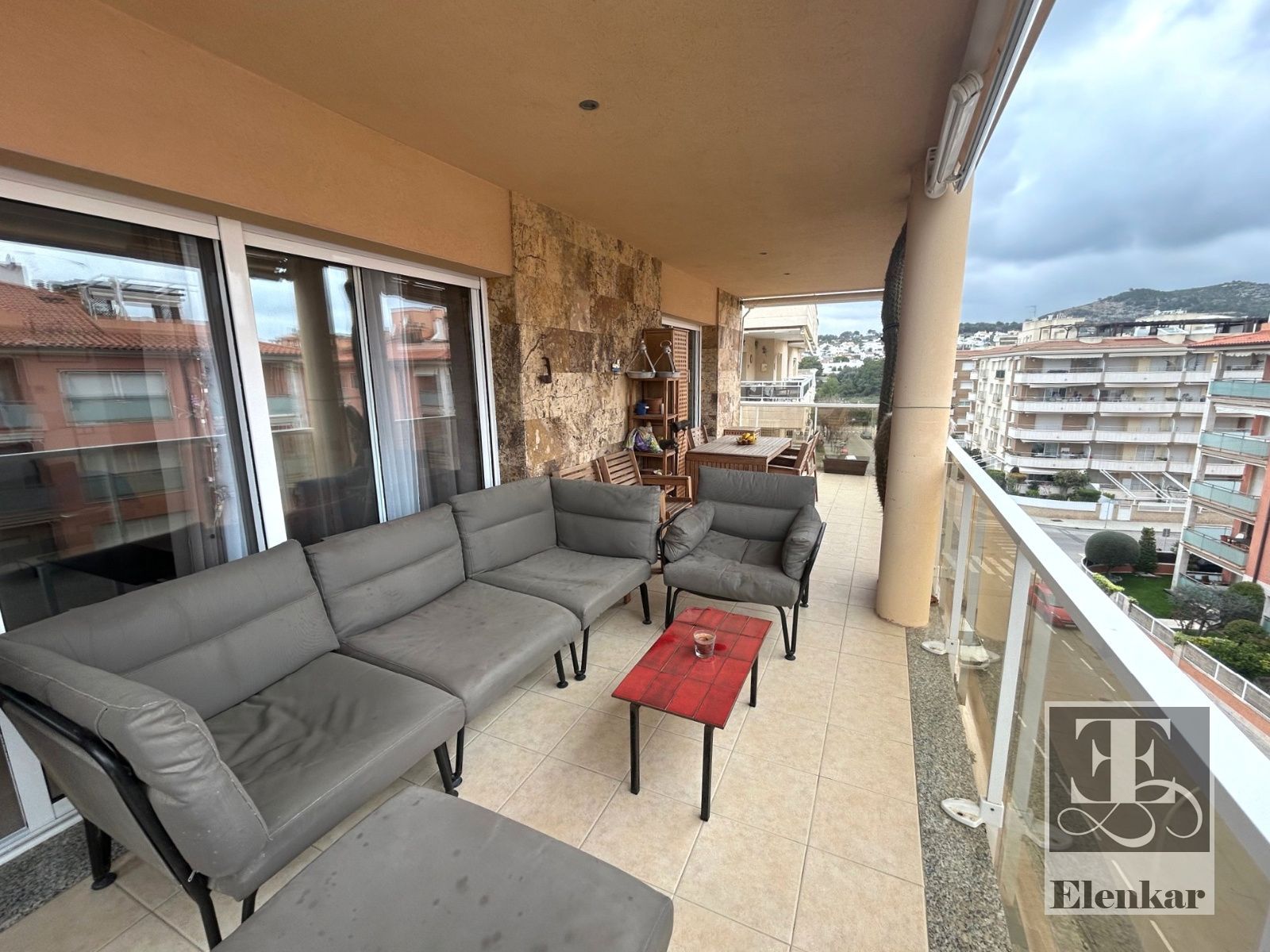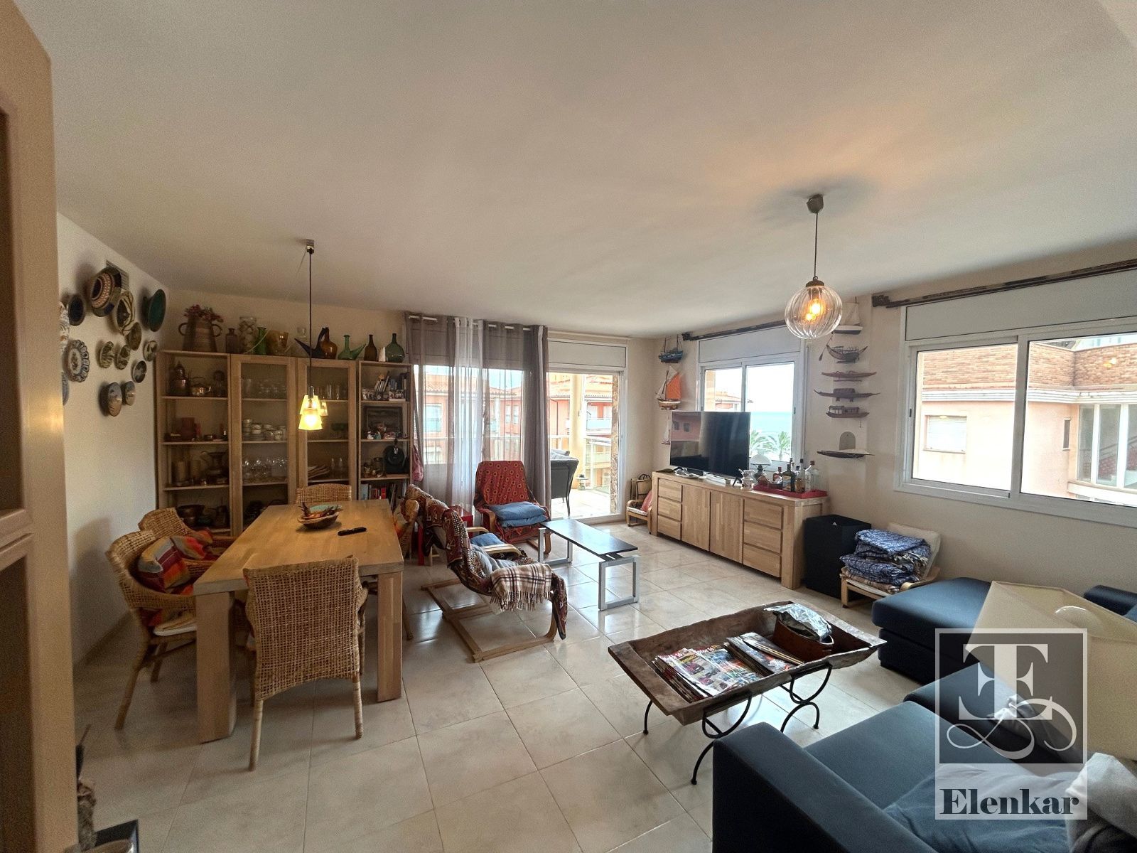 Uno de los grandes protagonistas de esta vivienda es su luminoso salón, un espacio amplio y agradable que se llena de luz natural durante gran parte del día. Desde aquí podrás disfrutar de espectaculares vistas al mar, creando un ambiente único donde relajarte, compartir momentos con familia y amigos o simplemente contemplar el Mediterráneo.